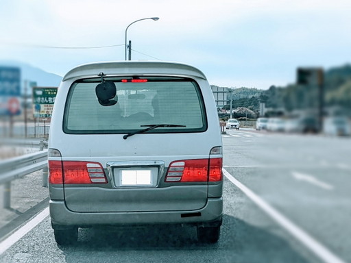 天井のイルミネーションが派手なワゴン車に乗った私たちは