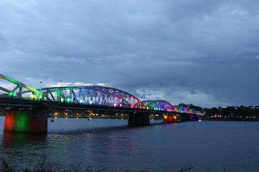 時刻によって、照明の色が変わっていきます。ダナンにもドラゴンブリッジという街のシンボルのような橋があって、色が変わるなどライトアップも美しかったのですが