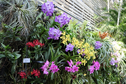 美しい花がいっぱい!(上は紫の洋ラン・バンダ)。