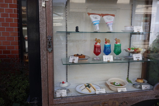 なんとなくレトロな店構えやショーウィンドー。ゾウのクッキーが載っているクリームソーダが可愛い! 看板メニューのようでした。せっかくここで出会ったのも何かのご縁と思い、美術館訪問後、私たちも並ぶことに。