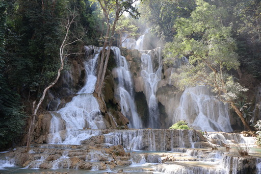 後で知ったのですが、クアンシーの滝やその下流にある多くの滝は、鍾乳石など石灰分の多い岩(トラバーチン)でできた段丘(石灰華段丘)の典型例なのだとか。