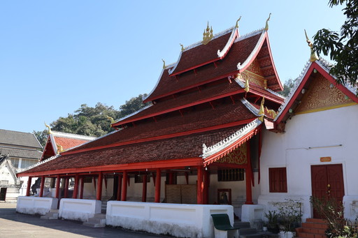 本堂内にあるという祭礼用の豪華なボートは見落としましたが、境内の艇庫にはとても大きなボートが格納されていて、メコン川と共に歩んできたルアンパバーンの寺院らしいなと思いました。