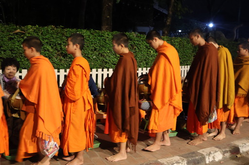 疲れているはずなのですが、スマホが使えない状態で今日1日大丈夫かなと心配の余りあまり眠れず、5時ごろに目が覚めました。昨夜かなり早く寝た夫も早起きしたので、ルアンパバーン最後の朝に、もう一度托鉢を見学。幸い何度も言った道なので、グーグルマップを見なくても歩けます。