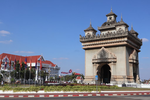 有名なパリのエトワール凱旋門にインスピレーションを受け、ラオスとフランスの芸術を融合した様式のこの建造物は、「勝利の門」という意味の無名戦士の追悼記念碑。